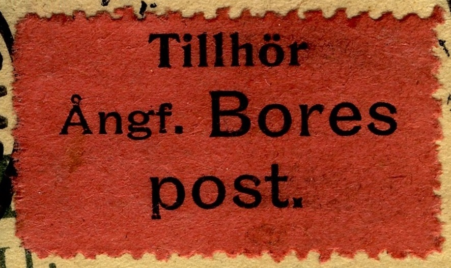 Swedish authorities also printed ambulance covers, a protective cover to forward damaged mail. Text printed on the covers: "Indehåller en försändelse tillhörande förolyckade ångf. BORES post"